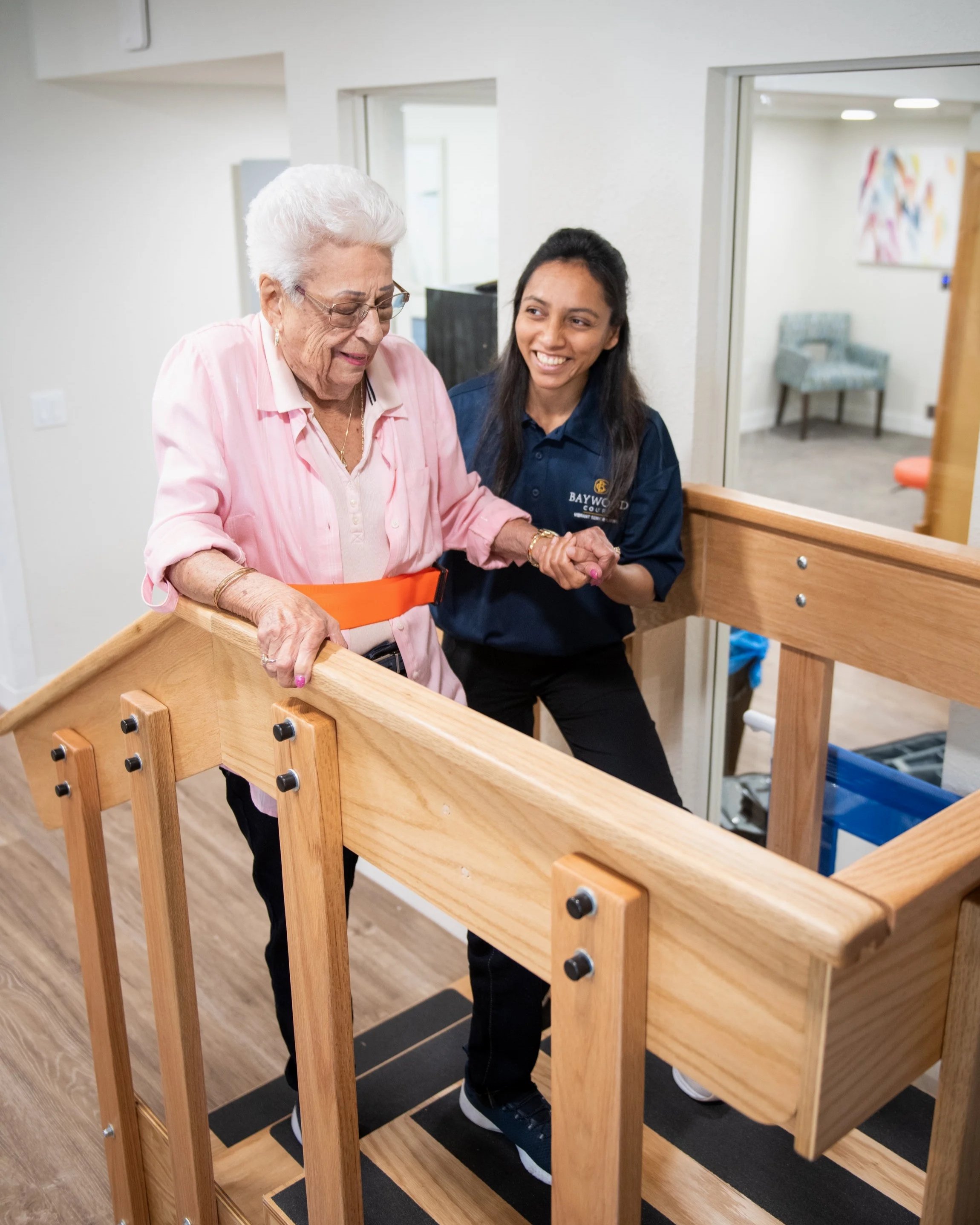 Baywood Court’s therapy center provides a functional and innovative approach to rehabilitative care. Every corner has been thoughtfully designed to create an environment that combines technology, comfort, and therapeutic excellence.